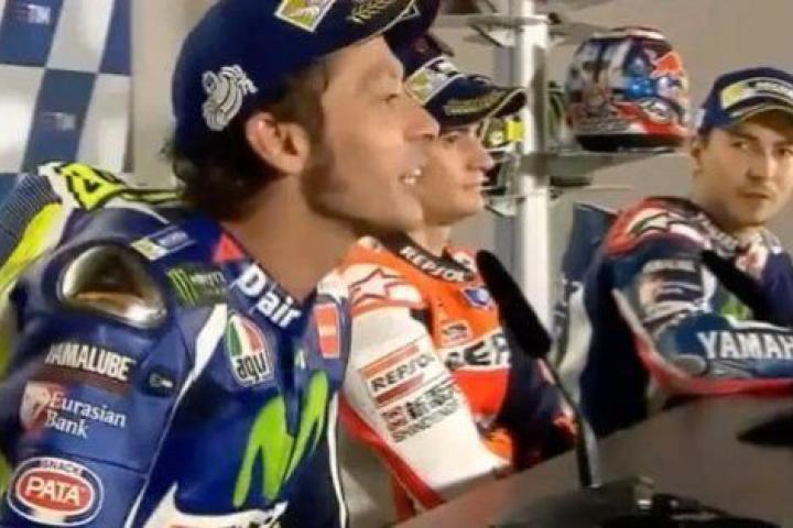 Al oír esas palabras Rossi se sonrío y Lorenzo le espetó "Es verdad", a lo que Rossi negó aseverando "No es verdad". Y Lorenzo insistió "Es verdad", lo que desencadenó la discusión entre ambos tal y como sigue.