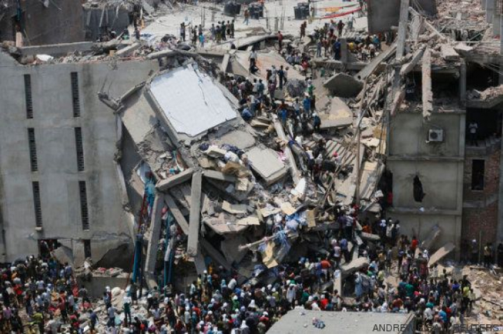 Los equipos de rescate auxilian a obreros textiles que quedaron atrapados en los restos del edificio de Plaza Rana tras la caída del edificio en abril de 2013.