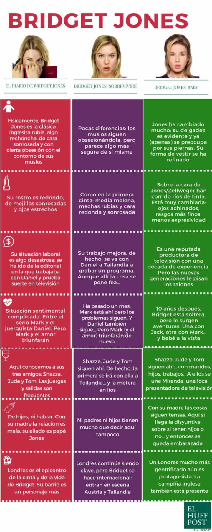 Bridget Jones: así ha cambiado la protagonista en las tres películas de la saga (INFOGRAFÍA)