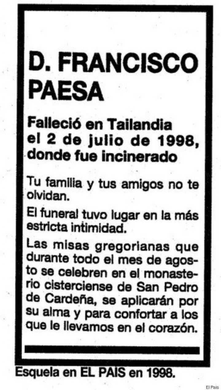 Y recuerda: “El único que salió de aquello sin perder una sola pluma fue Paesa”. Solo unos años después, cuando la instrucción de la jueza Ana Ferrer en el Caso Roldán hizo aparecer su nombre una y otra vez, se vio obligado a orquestar una nueva performance: fingir su muerte por infarto en un país del Sureste asiático y publicar una esquela en El País. Era 1998, y antes de ‘morir’, vació sus cuentas. Nunca se sabe qué va a encontrarse uno en el Más Allá.