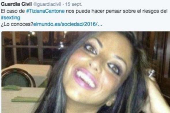 La Guardia Civil decidió usar a Tiziana Cantone como ejemplo de los peligros del sexting (envío de contenidos eróticos o pornográficos, por medio de teléfonos móviles). "El caso de Tiziana Cantone nos puede hacer pensar sobre los riesgos del sexting", publicó la Benemérita en su cuenta oficial de Twitter.