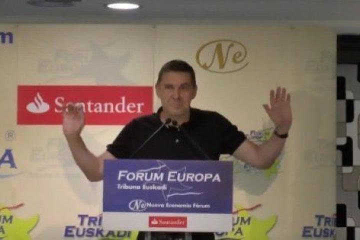 Una grabadora en el atril ha sido la forma que ha tenido el partido de ultraderecha VOX para tratar de boicotear el desayuno informativo en el que ha participado Arnaldo Otegi en el Forum Europa-Tribuna Euskadi.