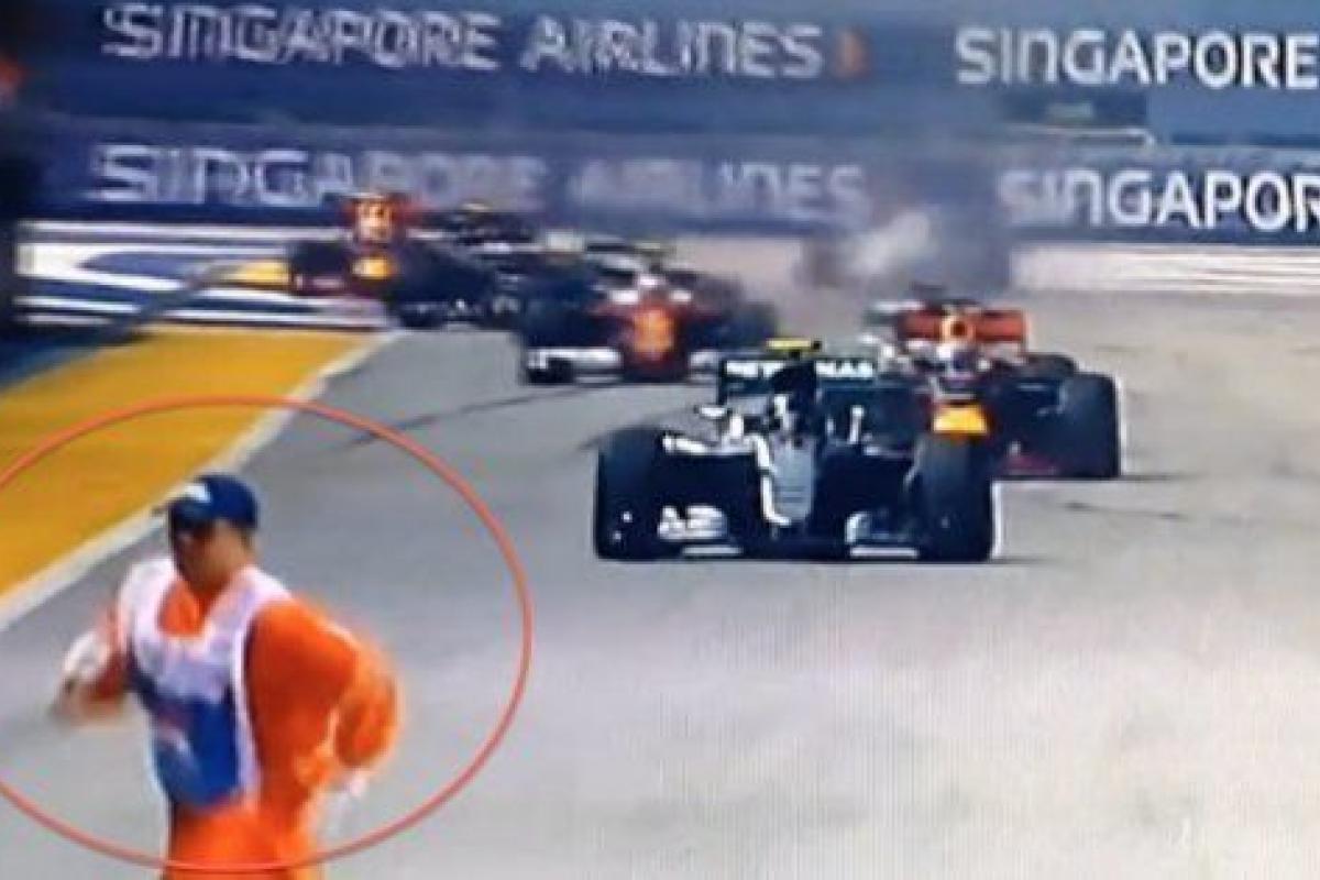 Incalificable. Un comisario de carrera irrumpió el domingo en el circuito de Marina Bay (GP Singapur), lo que a punto estuvo de acabar en tragedia. Sucedió tras el accidente protagonizado por el alemán Nico Hülkenberg que, en sí mismo, no tuvo ninguna consecuencia.