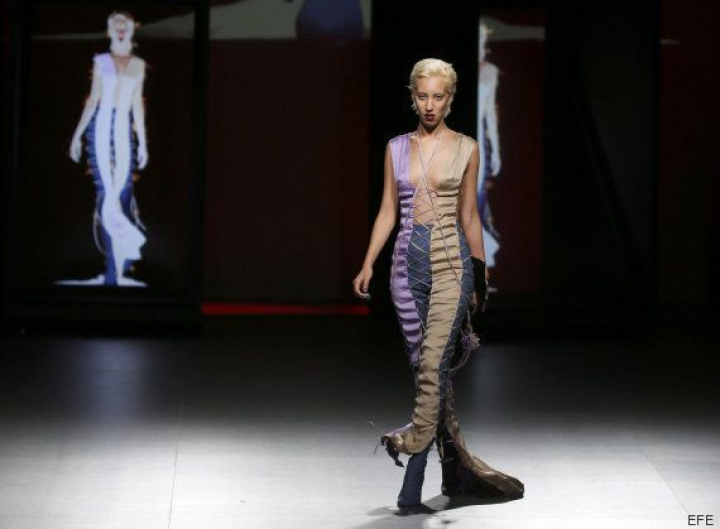 El primer desfile de esta última jornada de la 64ª MBFWM ha dejado boquiabierto al público. Salía a desfilar Abrahamsson, la firma ganadora del Samsung EGO Innovation Project. Esta iniciativa premia a los diseñadores que usan la tecnología en sus colecciones, ya sea en las prendas (con abrigos que se convierten en tiendas de campañas o vestidos que cambian de color en el agua) o, como en este caso, en la puesta en escena. La de Paty Abrahamsson (la diseñadora que da nombre a su firma) ha sido un espectáculo.
