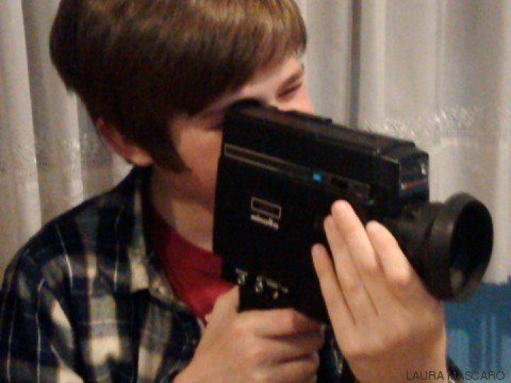 El hijo de Laura Mascaró grabando en su casa con una Super8.