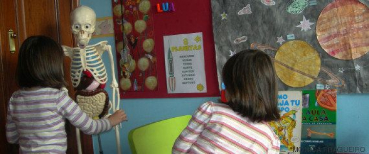 Mónica Fragueiro, una gallega de 44 años, aprovecha el verano para preparar el programa de aprendizaje de sus dos mellizas de 12 años. El año académico empieza el 1 de septiembre con regalos educativos y una foto de familia. Por las mañanas, clases teóricas; por las tardes, actividades extracurriculares. Y sin exámenes, porque cree que "un profesor sabe cual es el nivel de sus alumnos viendo el trabajo diario". Al llegar el verano, mientras prepara el siguiente año, las clases no paran, aunque se relajan.
