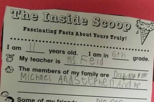El ejercicio consistía en rellenar un simple cuestionario para conocer algo más sobre el alumno. Así, Christopher puso que su profesora es la señorita Feid, que su comida favorita es la pizza, que su deporte preferido es el fútbol y que sus amigos son... NINGUNO.