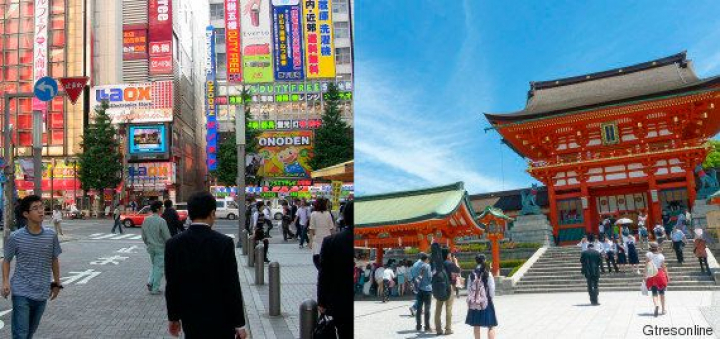 Uno de los atractivos fundamentales de Japón para los turistas no es otro que el contraste que se puede experimentar visitando Tokio, una de las ciudades más modernas del mundo, en la que desfilan extravagantes grupos de gente manejando la última tecnología, y Kioto, una de los lugares en los que se pueden ver a hombres y mujeres paseando con suntuosos kimonos.