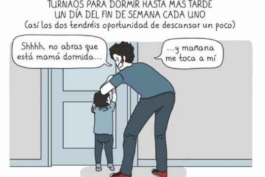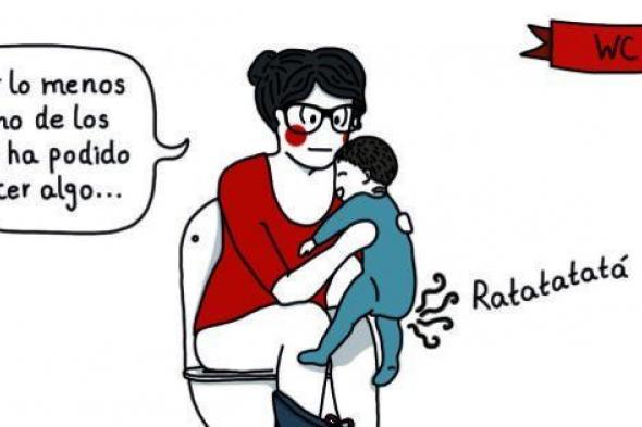 El libro no es autobiográfico, "no al 100%". "Cada uno dibuja lo que tiene a mano", explica la autora. "Hay cosas por las que he pasado, pero trato de reflejar un poco una media de lo que suele pasarnos a todos". Echa un vistazo, papá/mamá de hoy en día. Ya verás como te suena…