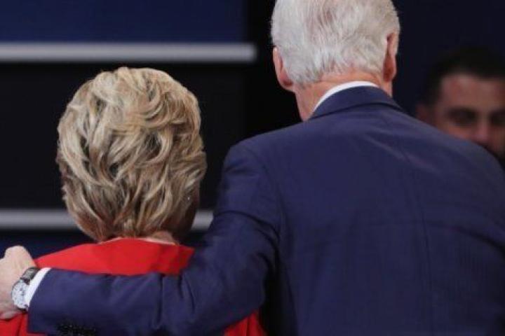 No había comenzado aún el debate, pero las cámaras captaron el momento en el que el marido y mujer de los candidatos se saludaron. Fue un saludo frío, se dieron simplemente la mano, pero la imagen queda ahí, para la historia: