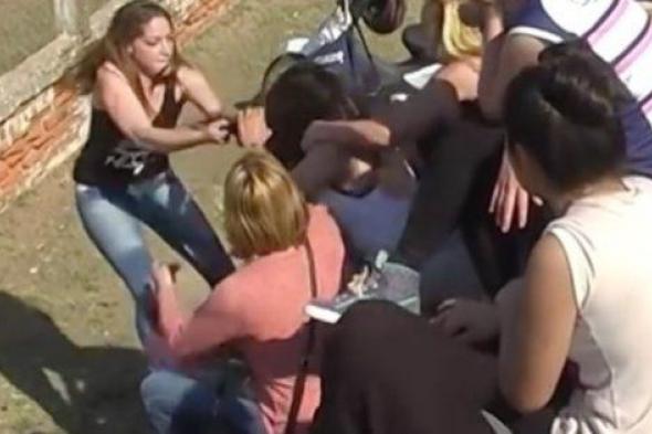 Todo fue a peor cuando una de ellas agarró del pelo a la otra y comenzó a agredirla.Como se puede ver en las imágenes, algunos intentaban separarlas y calmarlas, mientras que varios hombres comenzaron también a pelearse entre sí.