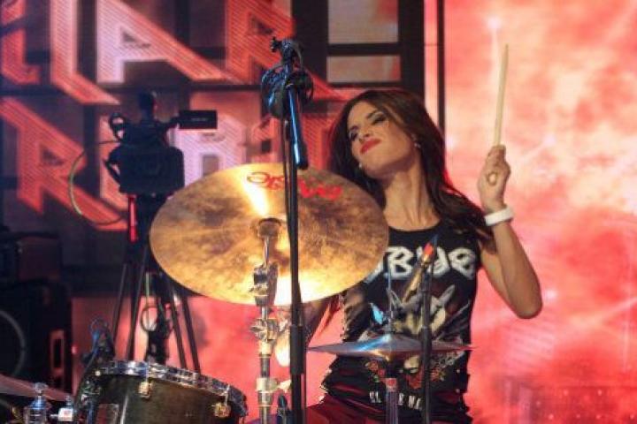 Pilar Rubio cumple su sueño y toca la batería con Obús