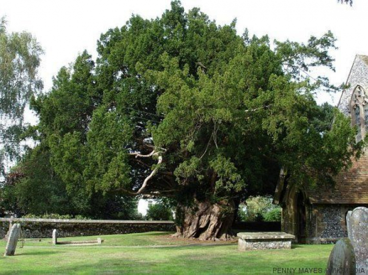 El tejo a la salida de la iglesia de Santa María de Eastling (Reino Unido), junto al cementerio. Calculan que tiene cerca de 2.000 años. Foto de Penny Mayes.