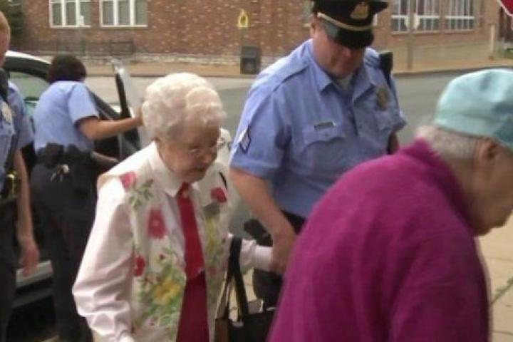 Sí, esta entrañable abuela deseaba ser detenida. Y lo logró el pasado viernes, cuando una pareja de policías de Missouri la puso "bajo arresto" y la acompañó a comisaría. Fue una sorpresa de los miembros de la comisaría de su vecindario, que querían premiar así la solidaridad de la señora Simms.