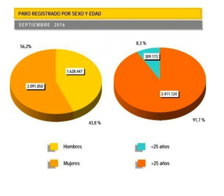 Por sexos, el desempleo masculino se situa en 1.628.447 al subir en 4.134 personas y el femenino, en 2.091.850, al incrementarse en 18.667. Entre los extranjeros, el paro aumentó en 3.549 personas hasta los 420.321 desempleados, de los que 149.745 proceden de un país comunitario y 270.576 de uno extracomunitario.