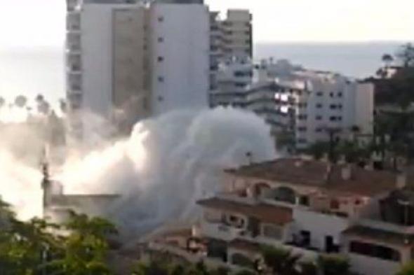 Una espectacular fuga en una tubería inunda un hotel en Benalmádena