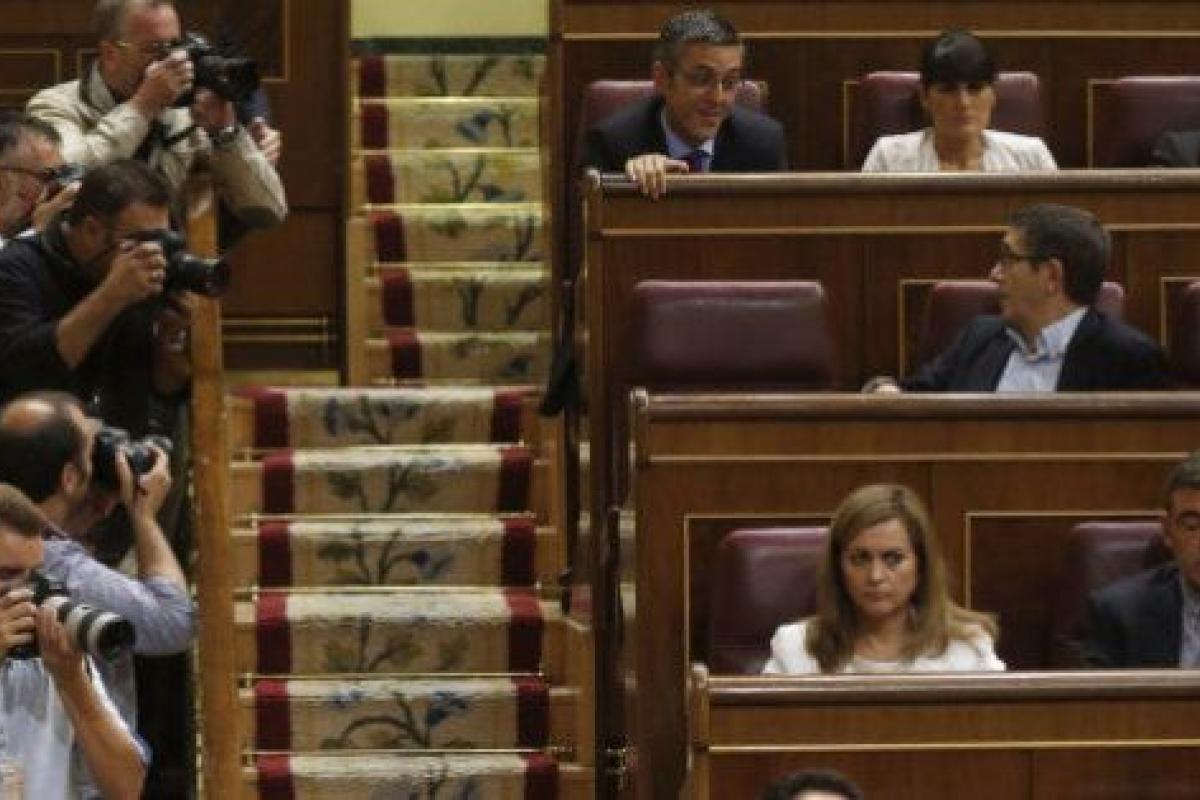 El escaño que hasta ahora ocupaba Sánchez, justo encima de banco azul del Gobierno, será ocupado por el portavoz parlamentario, Antonio Hernando, que por ahora sigue en el cargo.