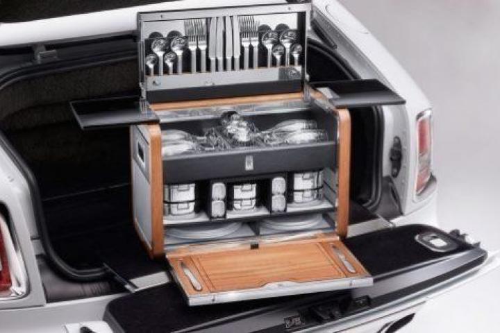 Rolls-Royce acaba de presentar a bombo y platillo su nuevo maletín de pícnic. Este capricho, diseñado para los automóviles de la emblemática marca inglesa ha recibido el nombre de Picnic Hamper y cuesta unos 46.000 dólares (más de 41.000 euros). La cesta en cuestión es una caja fabricada en piel que contiene vajilla, cristalería y cubertería para cuatro personas. Aunque cara, no es la más valiosa de la colección Rolls-Royce: la del modelo Phamtom Coupé cuesta 400.000 dólares (360.000 euros) y está fabricada con materiales aún más lujosos.