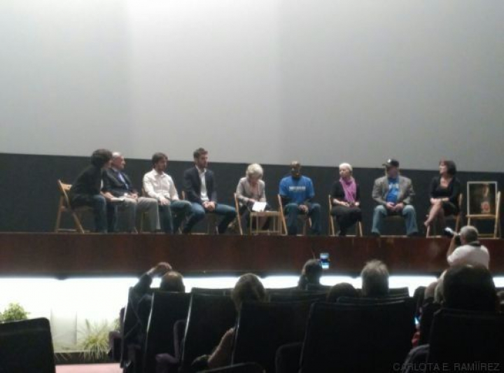 Los protagonistas del documental con los directores y dos miembros de Amnistía Internacional en el estreno