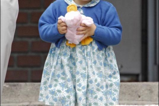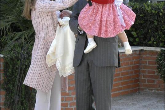 A la salida de la clínica tras el nacimiento de su hermana Sofía, en mayo de 2007