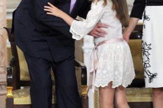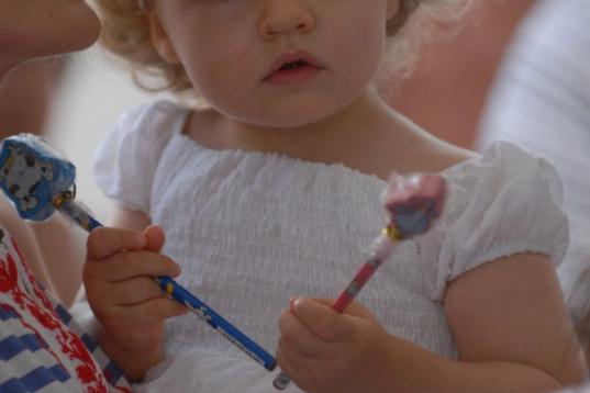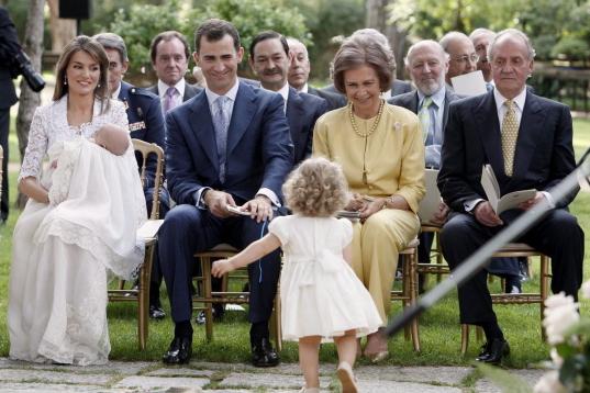 Jugando durante el bautizo de su hermana Sofía, en julio de 2007