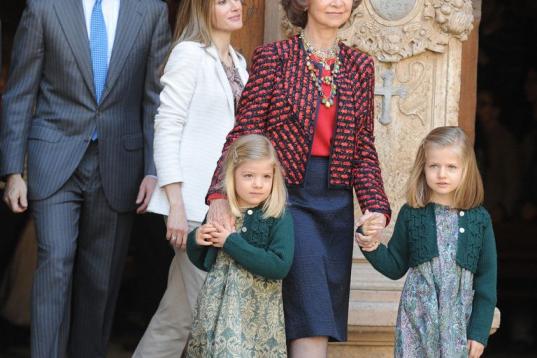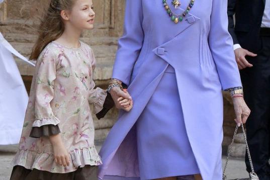 Con su abuela, la reina Sofía, en abril de 2014 en la misa de pascua de Mallorca