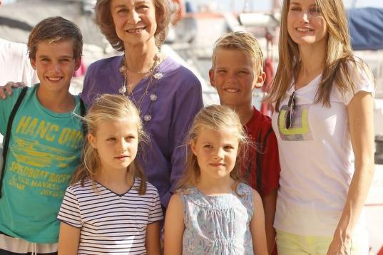 Con Letizia, la reina, su hermana y sus primos Pablo y Miguel, en verano de 2013 en Mallorca
