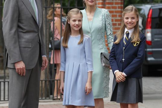 En la Primera Comunión de la infanta Sofía, el 17 de mayo de 2017 en Aravaca, Madrid