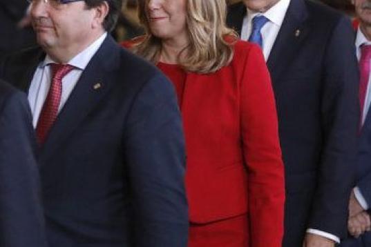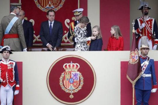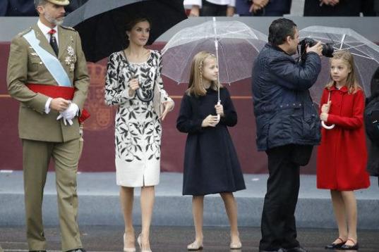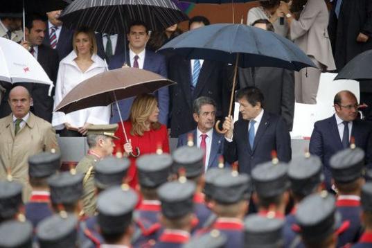 Miraditas entre Rajoy y Susana Díaz, un divertido chubasquero de Miguel Ángel Revilla, corrillos entre el presidente en funciones y los barones del PSOE, dos vestidos que podrían representar dos Españas para las infantas... La Fiesta Nacional ha sido muy atípica y ha dado bastante de qué hablar.