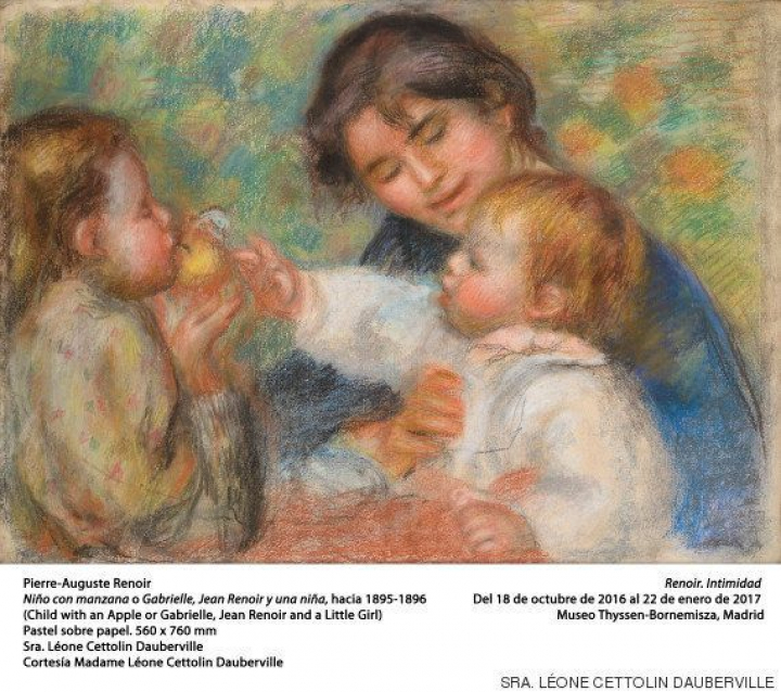 La familia ocupó un hueco fundamental en la pintura de Renoir desde el nacimiento de su primer hijo, Pierre, en 1885. Retrata no solo a su mujer Aline y a sus hijos, sino también a su entorno más cercano. Una de las figuras más recurrentes en su vida y su obra es Gabrielle Renard, una vecina del pueblo que cuidaba de sus hijos y que posteriormente se convirtió en una de las modelos del pintor.