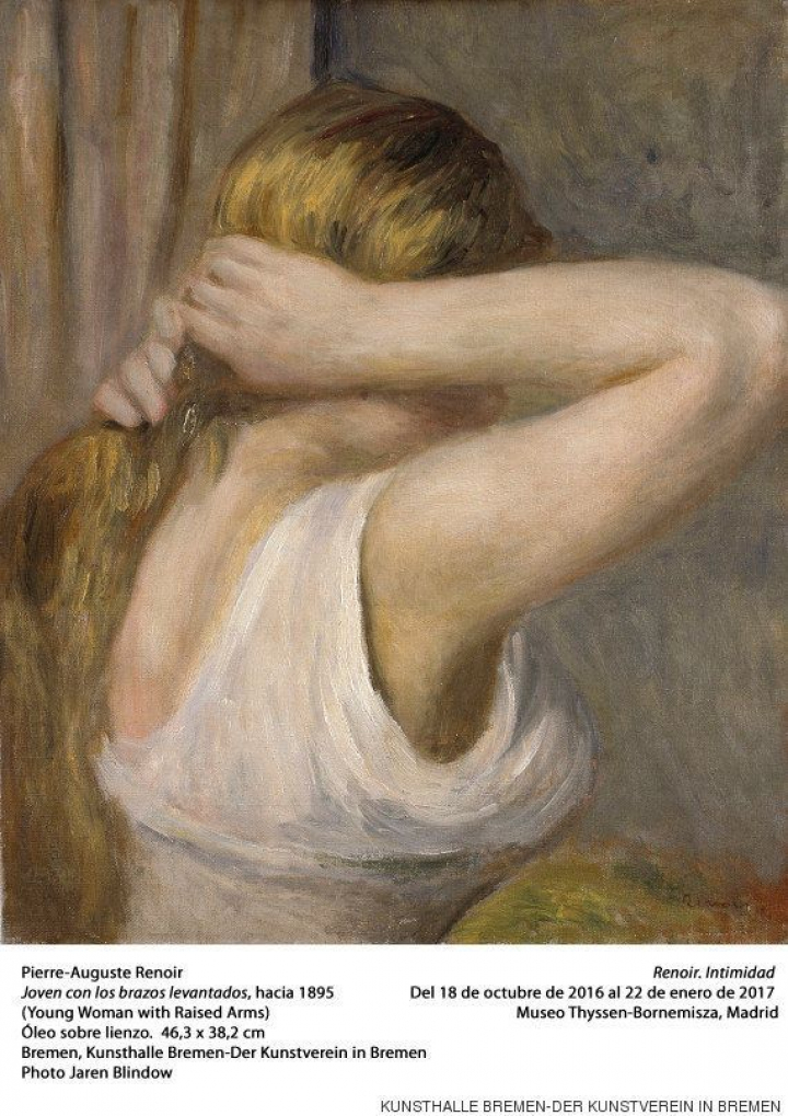 La sensualidad de Renoir se aprecia también en el juego de las manos con el cabello, las sensaciones táctiles o la elección de tejidos como la muselina a la hora de retratar a sus modelos.