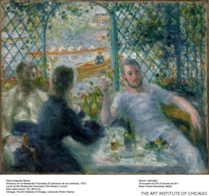 Además de sus tradicionales escenas al aire libre que plasman el bullicio del París de la época, Renoir también pinta escenas más cotidianas, como si estuviésemos espiando a los protagonistas tras una ventana. Buena muestra de ello son El almuerzo en el Restaurant Fournaise (1875 ) o Confidencias (Secretos) (1874).