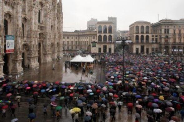 La plaza de la catedral de Milán ha sido el escenario donde se ha celebrado una ceremonia laica antes de que sus restos mortales sean trasladados al cementerio Famedio de la ciudad, junto a los de su mujer, fallecida en 2013, y los de otras personalidades ilustres milanesas.