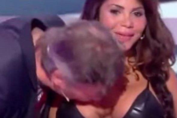Cuando ya habían terminado el numerito, el colaborador Jean-Michel Maire pidió a la modelo que le diera un beso. Ella se negó, le apartó la cara y fue entonces cuando él aprovechó para darle un beso en un pecho, ante la sorpresa de la modelo y las risas de los presentes.