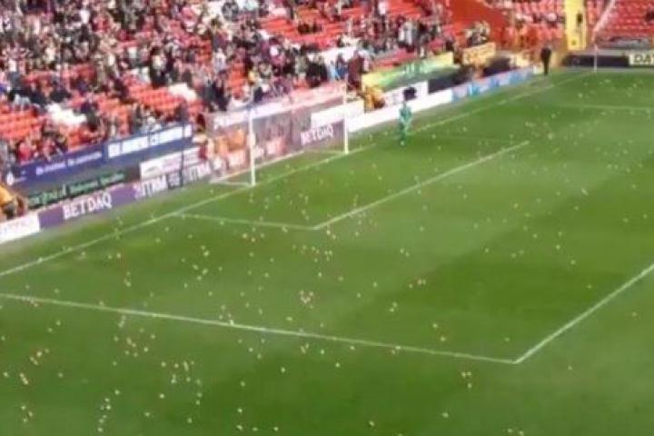 Fans de Charlton y Coventry lanzan cerditos al campo en modo de protesta