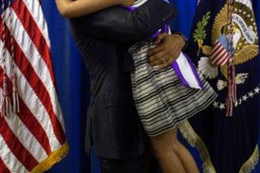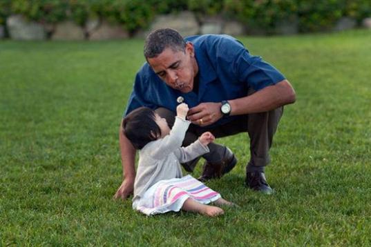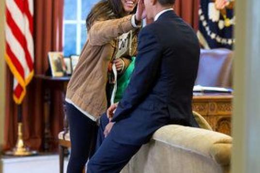 "The President's daughter Malia stopped by the Oval Office one afternoon to see her dad and, while they were talking, she wiped something from his face." (Official White House Photo by Pete Souza)