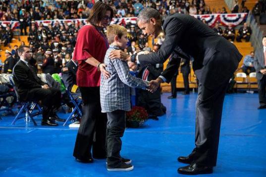 "Two days after the shootings at Newtown, the President traveled to Connecticut to meet with the victims' families and give remarks at a prayer vigil. The President spent hours greeting family members. Difficult as that was for ev...