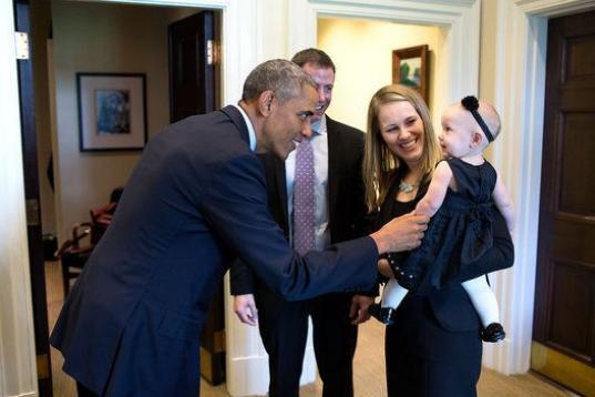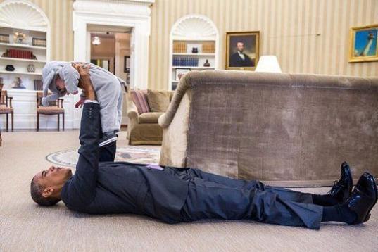 "At the President's insistence, Deputy National Security Advisor Ben Rhodes brought his daughter Ella by for a visit. As she was crawling around the Oval Office, the President got down on his hands and knees to look her in the eye....