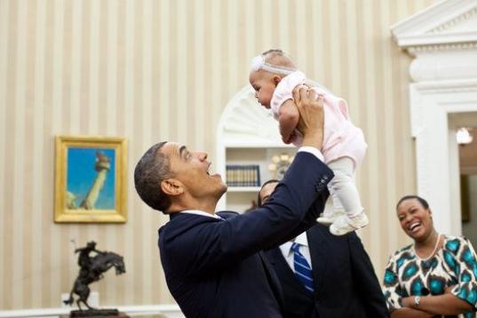 "Lawrence Jackson captured this cute photograph of the President holding Arianna Holmes, 3, before taking a departure photo with members of her family in the Oval Office." (Official White House Photo by Lawrence Jackson)