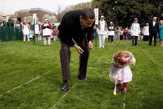 President Obama encourages a young participant at the White House Easter Egg Roll on the South Lawn April 13, 2009. (Official White House Photo by Pete Souza)