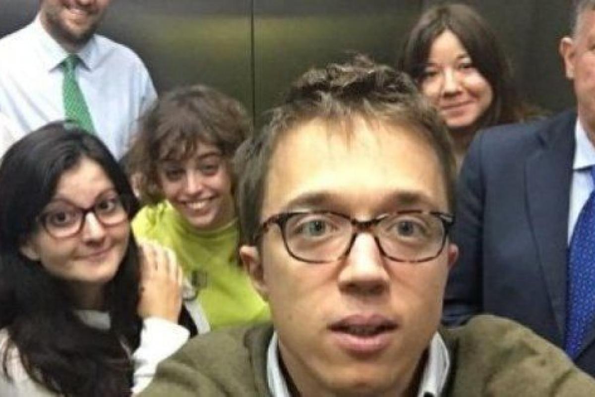 Íñigo Errejón se ha hecho un selfie en el ascensor del Congreso donde, según el 'número dos' de Podemos, se ha quedado "atrapado" junto a tres periodistas y tres diputados del PP.