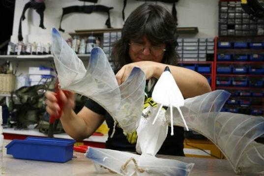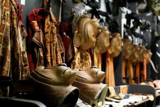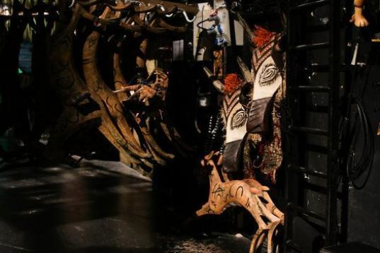 Todos los animales que trabajan en la obra parecen hechos de pesada madera, pero la realidad es otra. Hienas, jirafas, bisontes... están elaborados con fibra de carbono. Cuando no hay representación permanecen almacenados en los hombros (later...