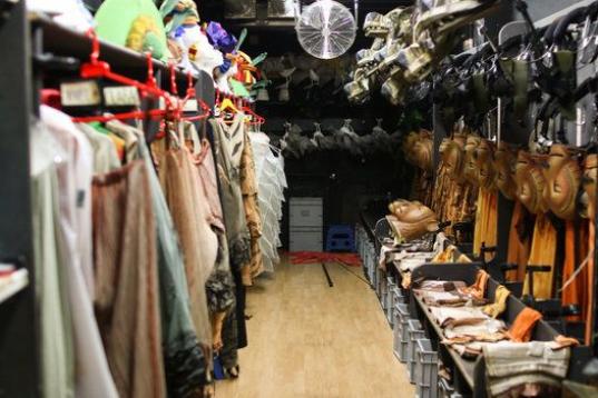 Por las perchas del búnker se distribuyen la ropa que saldrá al escenario durante la función. Todos los looks están hechos a medida, teniendo en cuenta tanto el cuerpo como la piel del actor. Se trata de que no haya diferencias entre ésta y...