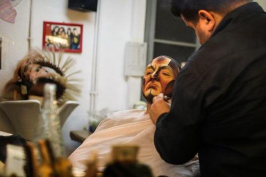 En la sala hay un total de cuatro maquilladores. Cada uno tiene sus personajes fijos, no varían de un día a otro. Cuanta más práctica tengan, mucho más rápida es el proceso de preparación. Cuando empezó la obra en 2011, el tiempo medio e...