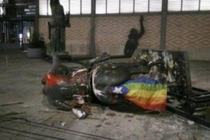 Barcelona retira la estatua de Franco decapitado tras acabar por los suelos