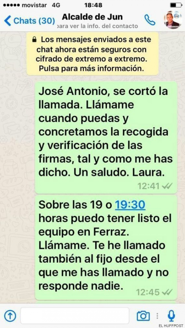 En ellos, la 'número dos' de Mario Jiménez en Ferraz le decía que le llamara cuando pudiera para concretar "la recogida y verificación" de firmas. Además, le informaba de que podía tener listo al equipo de Ferraz sobre las 19 horas.