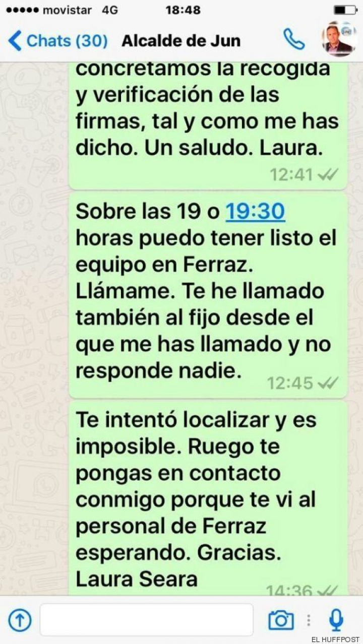 Ante la falta de respuesta, Seara también mandó un mensaje a Eva Maldonado, otra de las organizadoras de la recogida de firmas. El silencio siguió en las horas posteriores y la coordinadora de Organización intentó a partir del mediodía localizar a alcalde de Jun por mensaje directo en Twitter -es el socialista con más seguidores en esta red social-. Pero Ferraz tampoco ha logrado contactar con él por este medio.