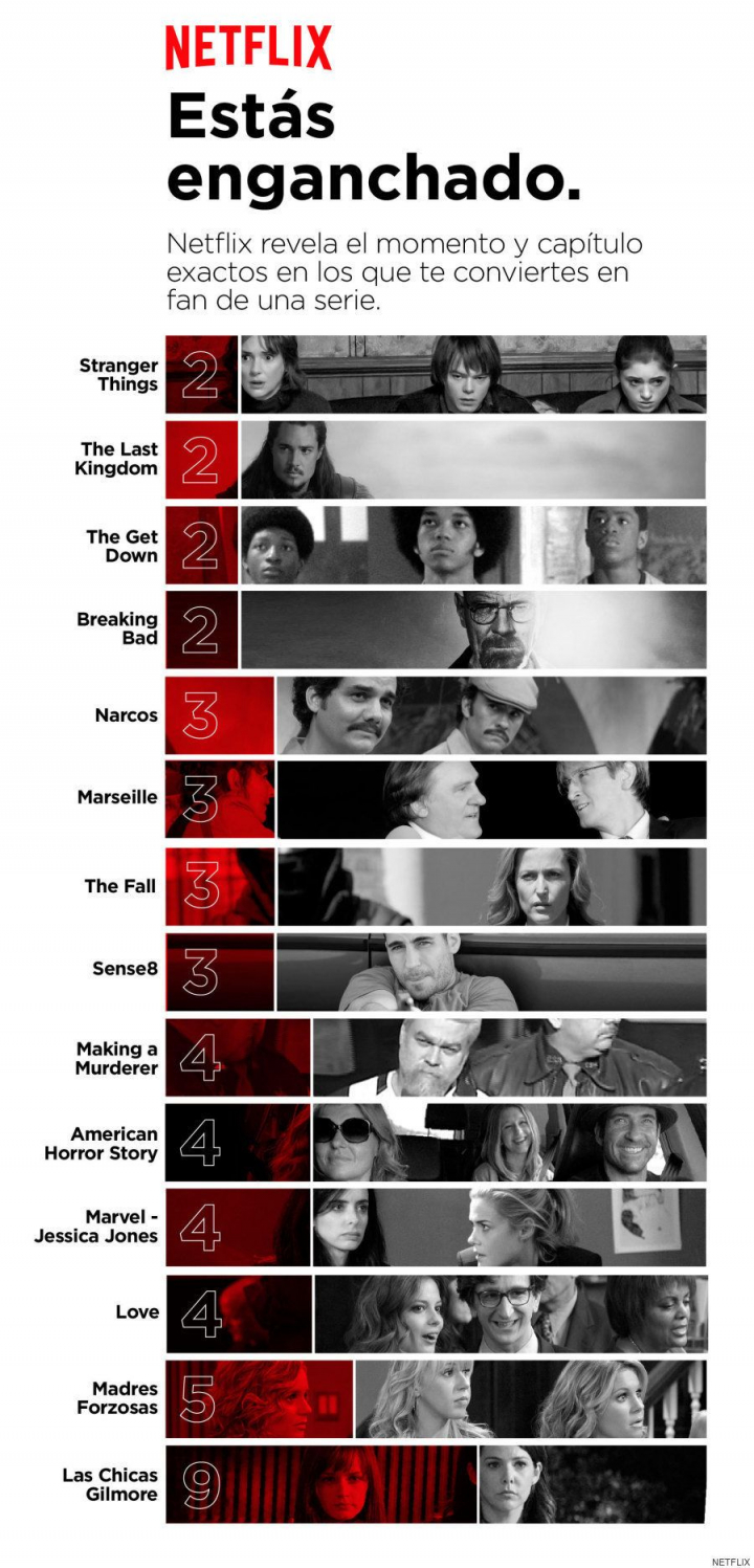 También puedes ver en esta galería el momento exacto de cada capítulo en el que nos enganchamos. Puede contener SPOILERS, así que evita leer la información de las series que aún no has visto.