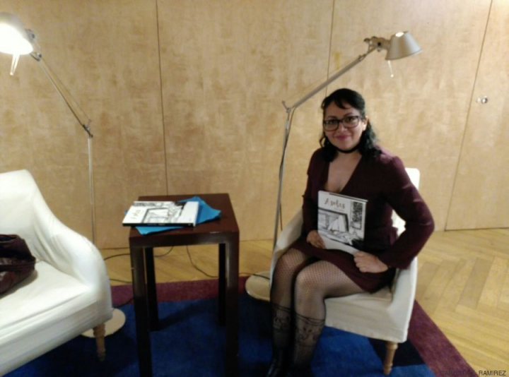 Idalia Candelas con su libro en el Hotel Las Letras (Madrid)