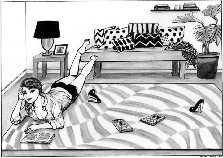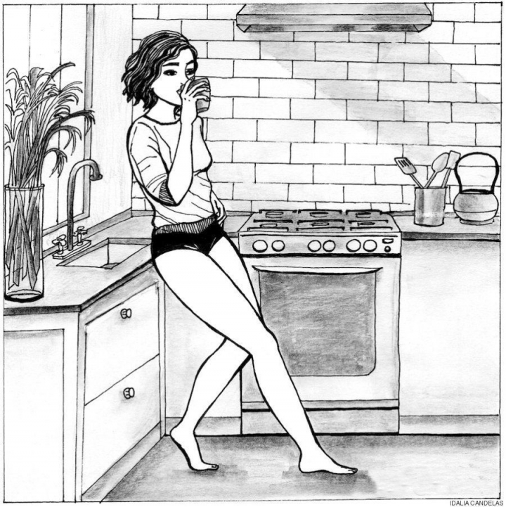 No todo el mundo sabe disfrutar de los momentos de soledad: tumbarse en la cama y fumarse un cigarro con la música a tope, tomarse una taza de café en bragas mientras se lee un libro en el sofá, llegar a la habitación y quitarse los tacones o el sujetador, dejarlos donde sea y disfrutar de una buena película... Estas son algunas de las escenas que representa la ilustradora mexicana Idalia Candelas en su libro A solas, que hizo "a partir de una experiencia propia": su vida.